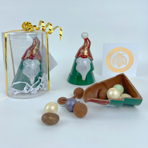 ნაძვის ხის სათამაშოები სასაჩუქრე შეფუთვა(შავი შოკოლადი-ვეგანური , სამარხვო)