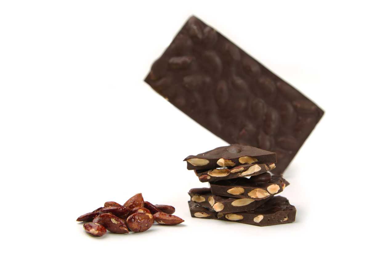 თაფლით კარამელიზირებული ხრაშუნა მთლიანი ნუში – ვეგანურ / სამარხვო (55%) შოკოლადში
