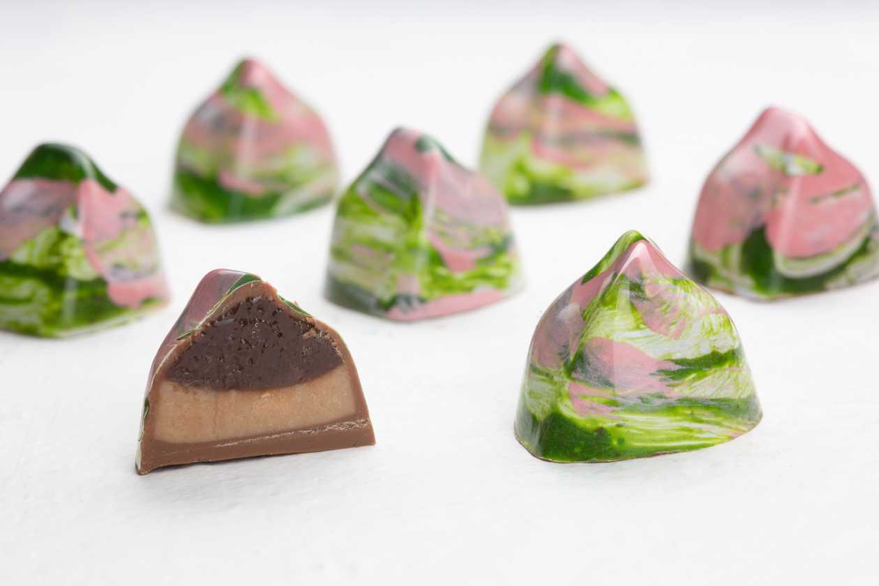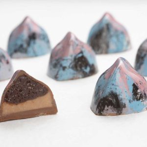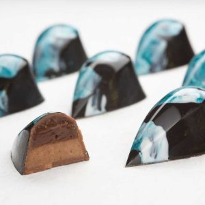 ყავის განაში და თხილის პრალინე რძიანი შოკოლადის გარსში