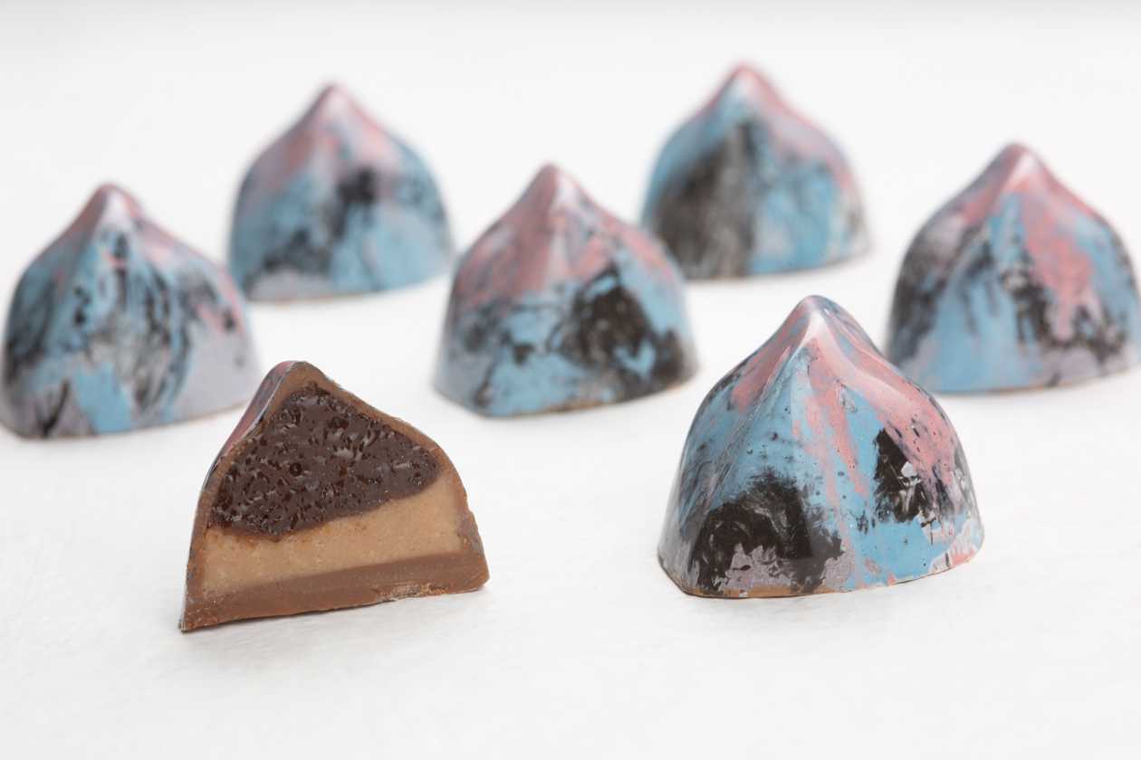 ყავის განაში და თხილის პრალინე რძიანი შოკოლადის გარსში